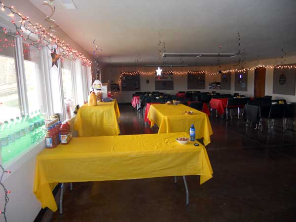 Includes fully stocked kitchen, 2 buffet bars, men’s and women’s restrooms, A/V system