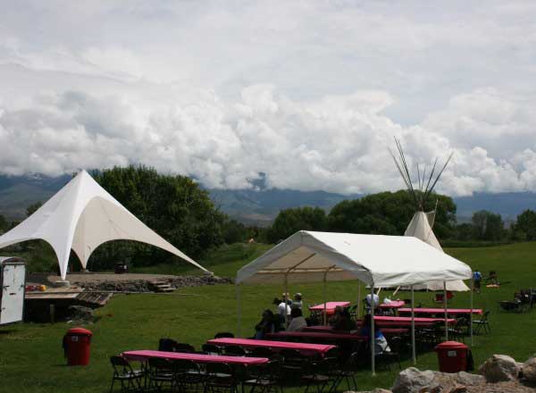 The Amphitheater is a beautiful outdoor setting with picturesque views of the mountains. Perfect for outdoor concerts, performances, weddings, and powwows. A large star tent to cover the stage and sound system are available for rent. Please see the Rental Rates tab for more details