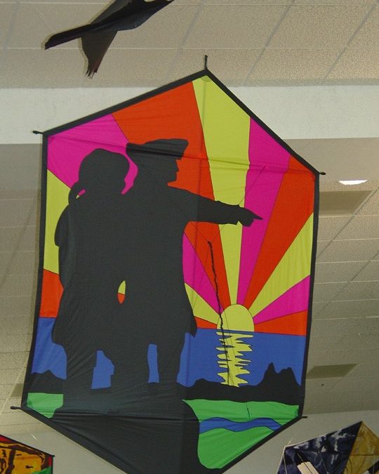 Locations of kites include the Lemhi County Courthouse, Stagecoach Inn, City Hall, the Museum’s print shop, the Museum, the Library, Nature’s Pantry, Salmon River Fly Box, Purple Easel Gallery, US Bank, Odd Fellows Bakery, Rags and Wags, Bri-Easy Shipping, Bertram’s Brewery, Steele Memorial Hospital, Clinic and Specialty Clinic, the Public Land Center, and the Sacajawea Center. When asked why she wanted to bring the exhibit to town Gray remarked, “Bob Russell, Governor’s Lewis and Clark Trail Committee president, saw the kites hanging last summer and share the brochure with me. This summer marks the Sacajawea Center’s 15 year anniversary and it seemed like a wonderful opportunity to bring in a special exhibit and partner with local business to make it happen.”