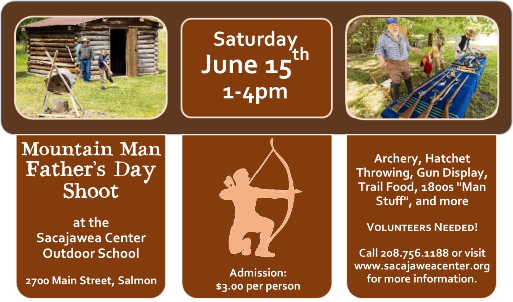 The Mountain Man Father’s Day Shoot will be held again at the Sacajawea Center on the Saturday before Father’s Day. This year it is June 15th from 1-4pm. We will be here rain or shine and we are really hoping for a warm and sunny day. If you join us admission is $3.00 per person.