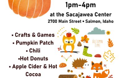 Join us for our annual Fall Frolic Event October 12th from 1pm to 4pm! The event will take place at the Sacajawea Center, located at 2700 Main Street in Salmon, Idaho! Crafts & Games Pumpkin Patch Chili Hot Donuts Apple Cider & Hot Cocoa Cookie Decorating...