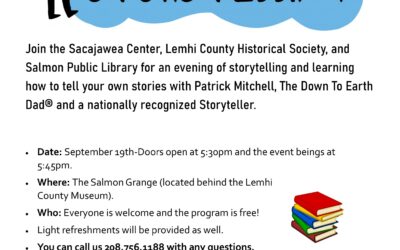 Join the Sacajawea Center, Lemhi County Historical Society, and Salmon Public Library for an evening of storytelling and learning how to tell your own stories with Patrick Mitchell, The Down To Earth Dad® and a nationally recognized Storyteller. Date: September...