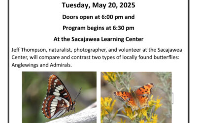 Join us for "Discovering Butterflies: Anglewings & Admirals" by naturalist Jeff Thompson on May 20th! Jeff will compare and contract the two types of locally found butterflies. Where: Sacajawea Learning Center (the big building) When: Tuesday, May 20th Time: Doors...