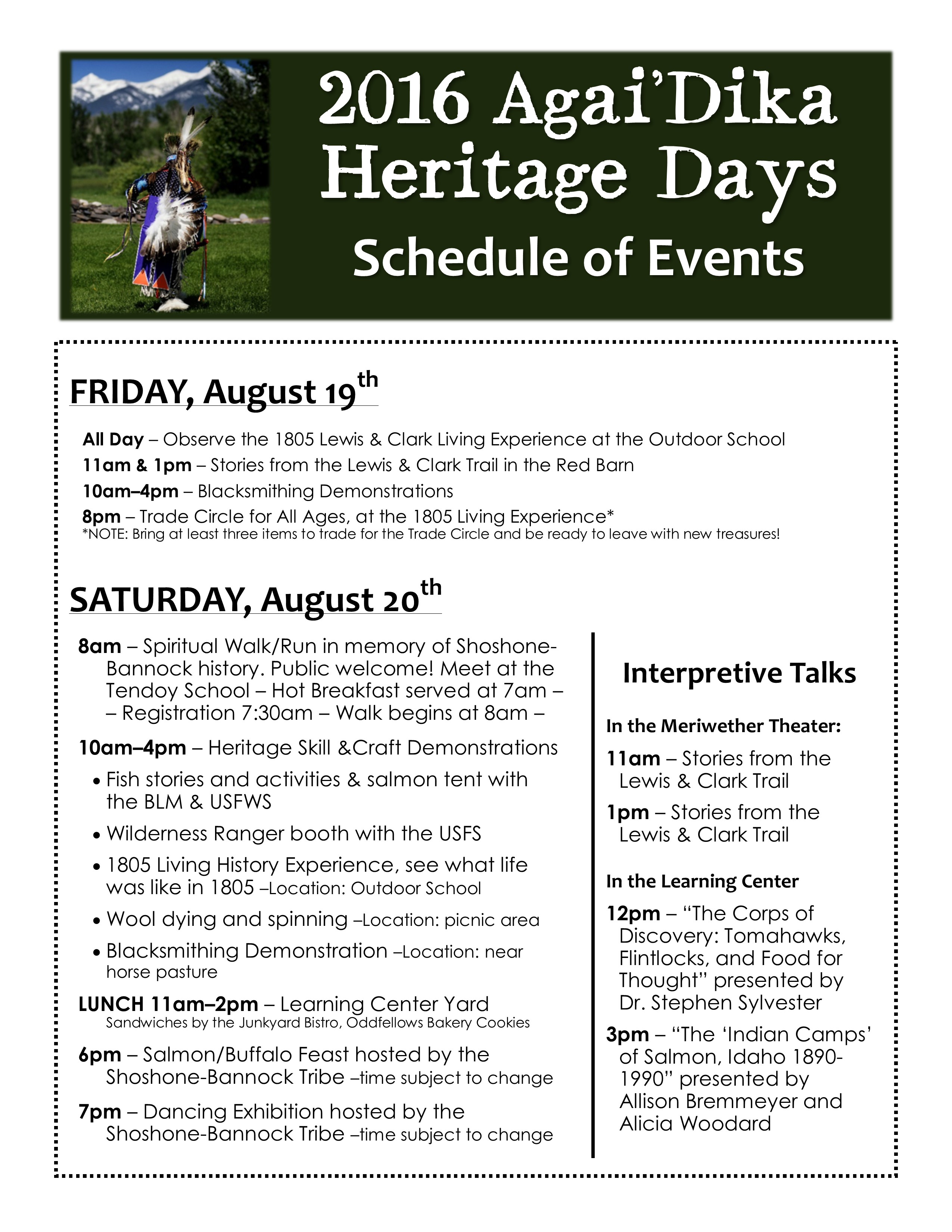 Agai’dika Heritage Days is just a week away. Here’s our schedule of event. The day is packed full with all sorts of fun activities, talks, and programs for the whole family. Call us with any questions: 208.756.1188.
