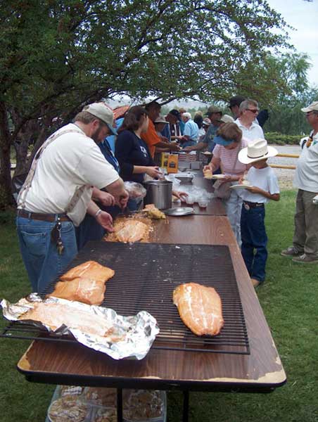 Each year the Shoshone-Bannock Tribes visit the Sacajawea Center and the Salmon and Lemhi Valleys to commemorate their ancestors and connect their youth to their homeland. The main event of the gathering happens on Saturday and includes an early morning breakfast and walk/run along Agency Creek between Tendoy, ID and Lemhi Pass. After the walk/run, in the late afternoon, the tribe holds a singing and dancing exhibition at the Sacajawea Center amphitheater as well as a salmon and buffalo feast.